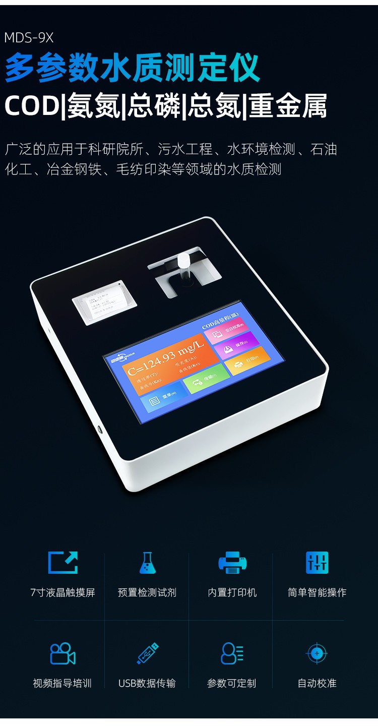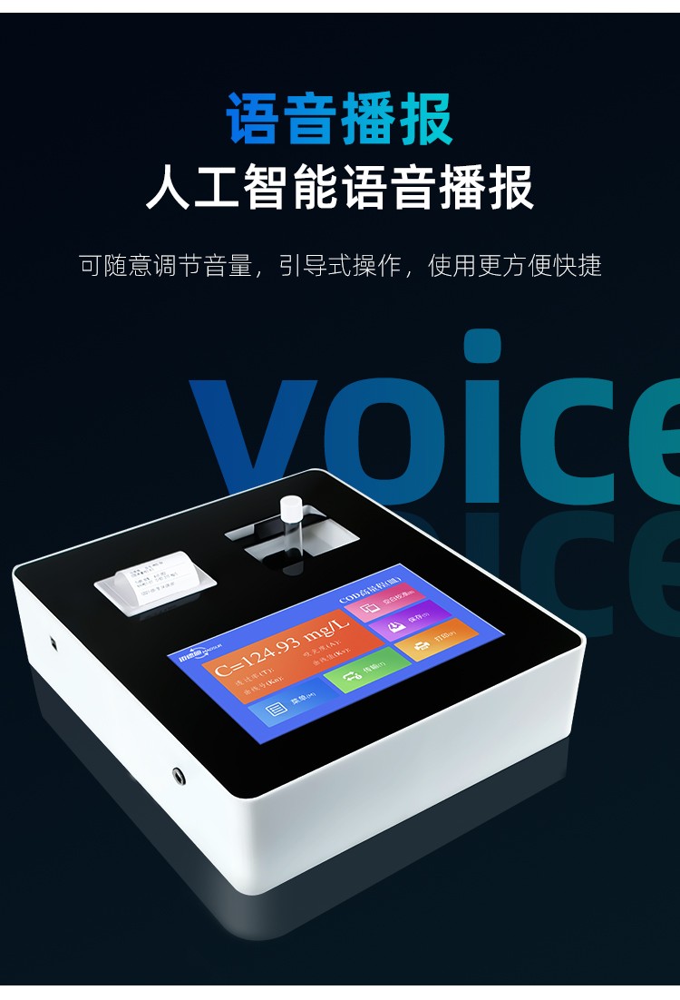 人工智能語音播報提示,可隨意調節音量, 使用更方便更 配備112種預先編程的曲線,曲線數量990條,可濃度直讀,測量結果更精密; 具有數據存儲功能,可存儲90萬組數據,並能自由查看; 10寸彩色液晶顯示觸摸屏,全中文操作模式,更便於操作掌握; 儀器自備校準功能,可根據標準樣品計算, 並存儲曲線,無需手動製作曲線; 配備USB接口傳輸功能,自帶打印機,可打印當前數據及存儲的曆史數據; 采用管比色、皿比色,雙比色係統